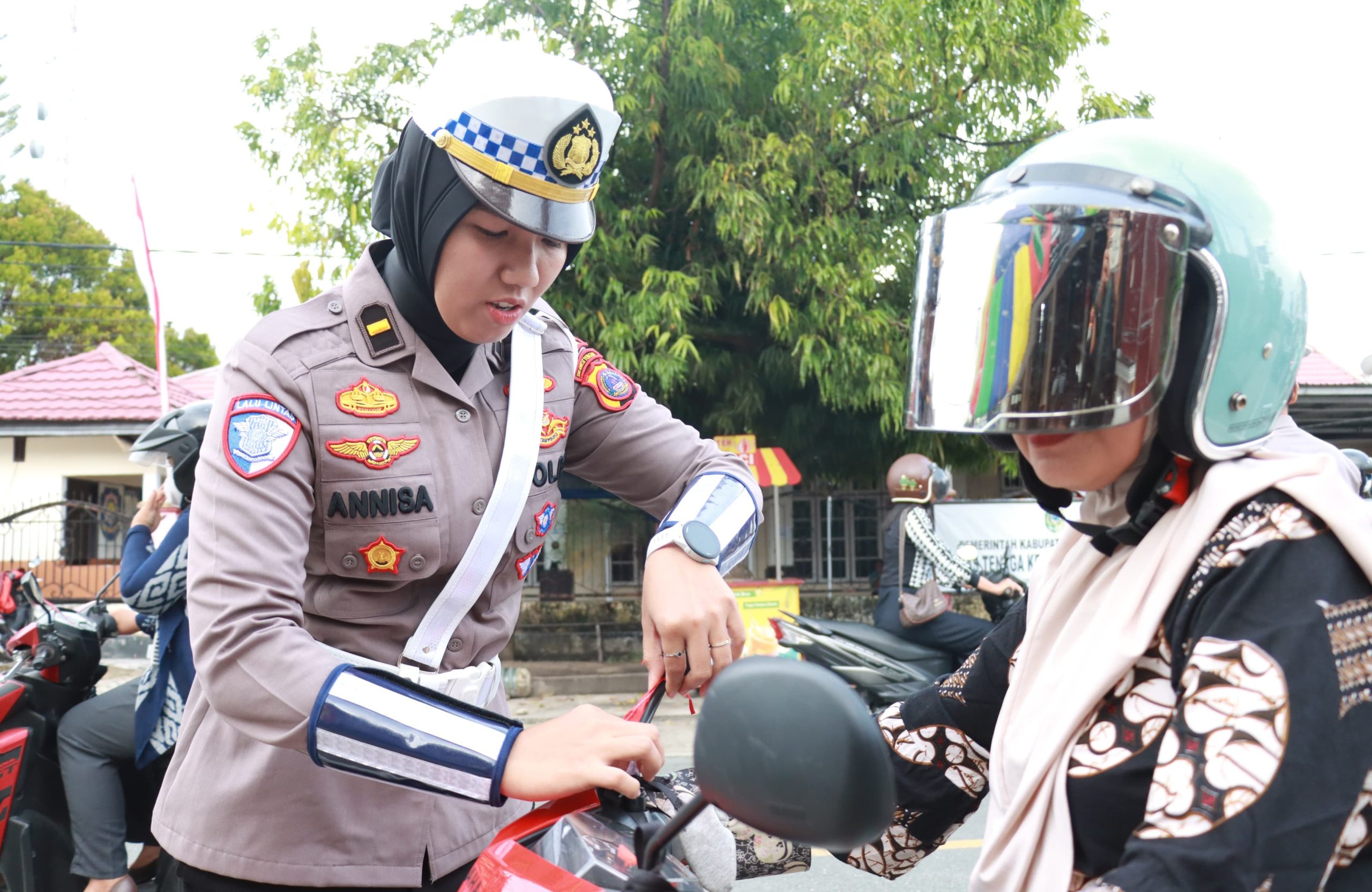 Selain membagikan bendera, kegiatan ini juga menjadi momen untuk memberikan edukasi keselamatan berlalu lintas kepada masyarakat.