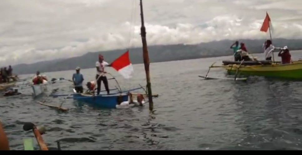 Mereka menggelar upacara bendera di atas permukaan laut Teluk Tomini menggunakan perahu katinting, Minggu (17/8/2025).