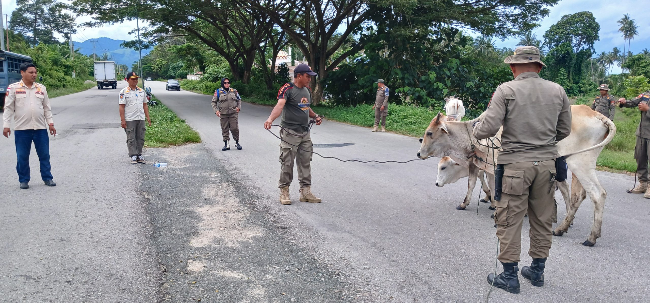 Sasaran utama penertiban adalah sapi dan kambing milik warga yang dibiarkan berkeliaran tanpa pengawasan.
