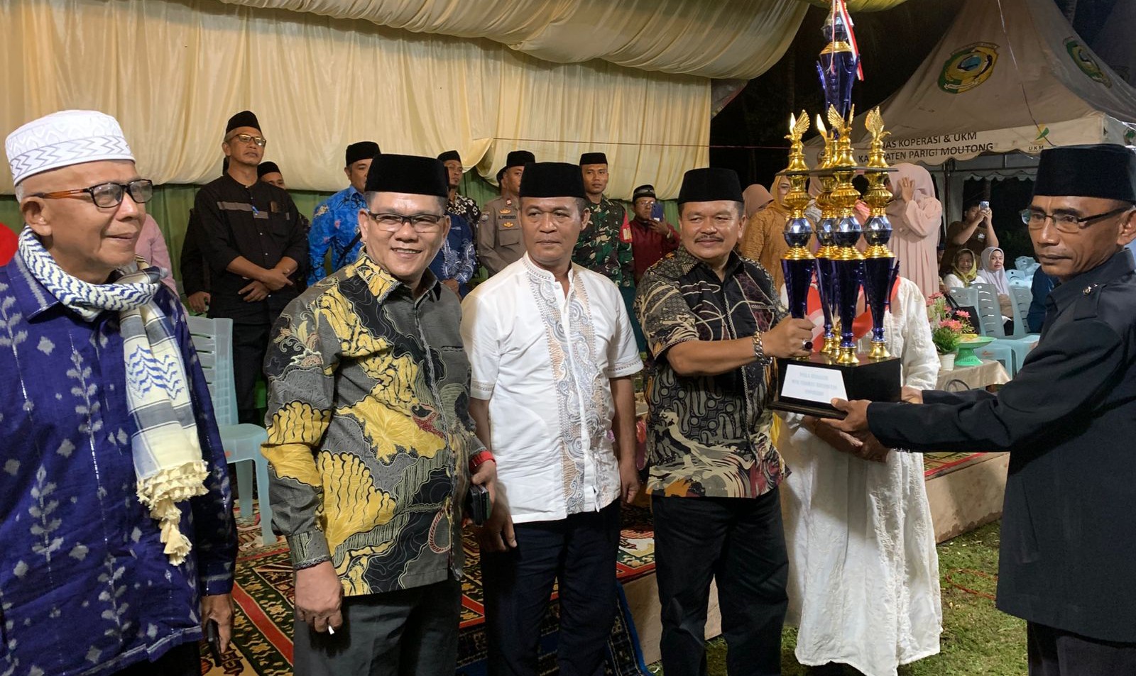 Penyerahan piala bergilir MTQ tingkat Kecamatan Ampibabo kepada Wabup Abdul Sahid dari Desa yang juara sebelumnya, Senin (1/9/2025). Foto – Diskominfo Kabupaten Parigi Moutong.
