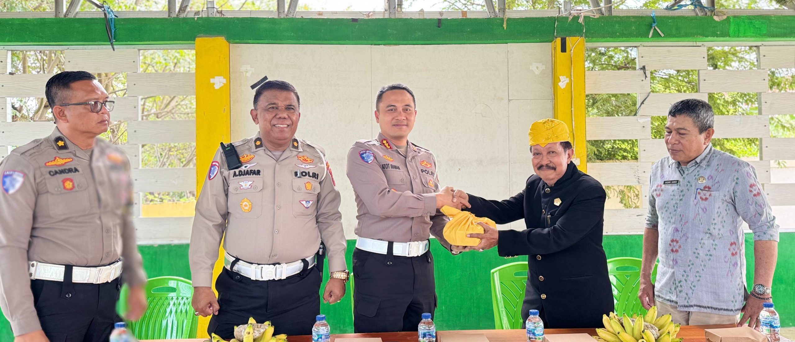 Dirlantas Polda Sulteng, Kombes Pol. Atot Irawan, S.I.K., M.M., yang hadir langsung dalam acara tersebut, menerima dokumen resmi sanksi adat dari Ketua Adat Talise Valangguni, Atma Mado.
