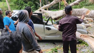 Saat itu, pohon berukuran besar di tepi jalan tumbang akibat terpaan angin kencang, dan langsung menimpa mobil Toyota Avanza warna silver DB 1834 AZ yang dikemudikan Ronal Pakaya (38), warga Desa Lemito, Kecamatan Lemito, Kabupaten Pohuwato, Provinsi Gorontalo.