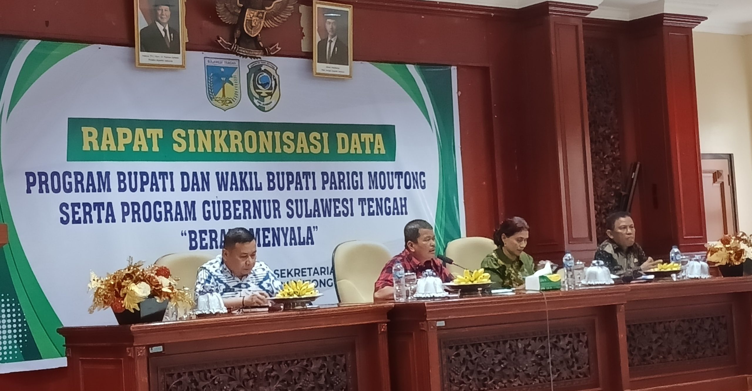 Rapat sinkronisasi data tersebut digelar untuk menyelaraskan program kerja Pemerintah Kabupaten Parigi Moutong, sekaligus memperbaiki validasi data dalam berbagai sektor pelayanan publik.
