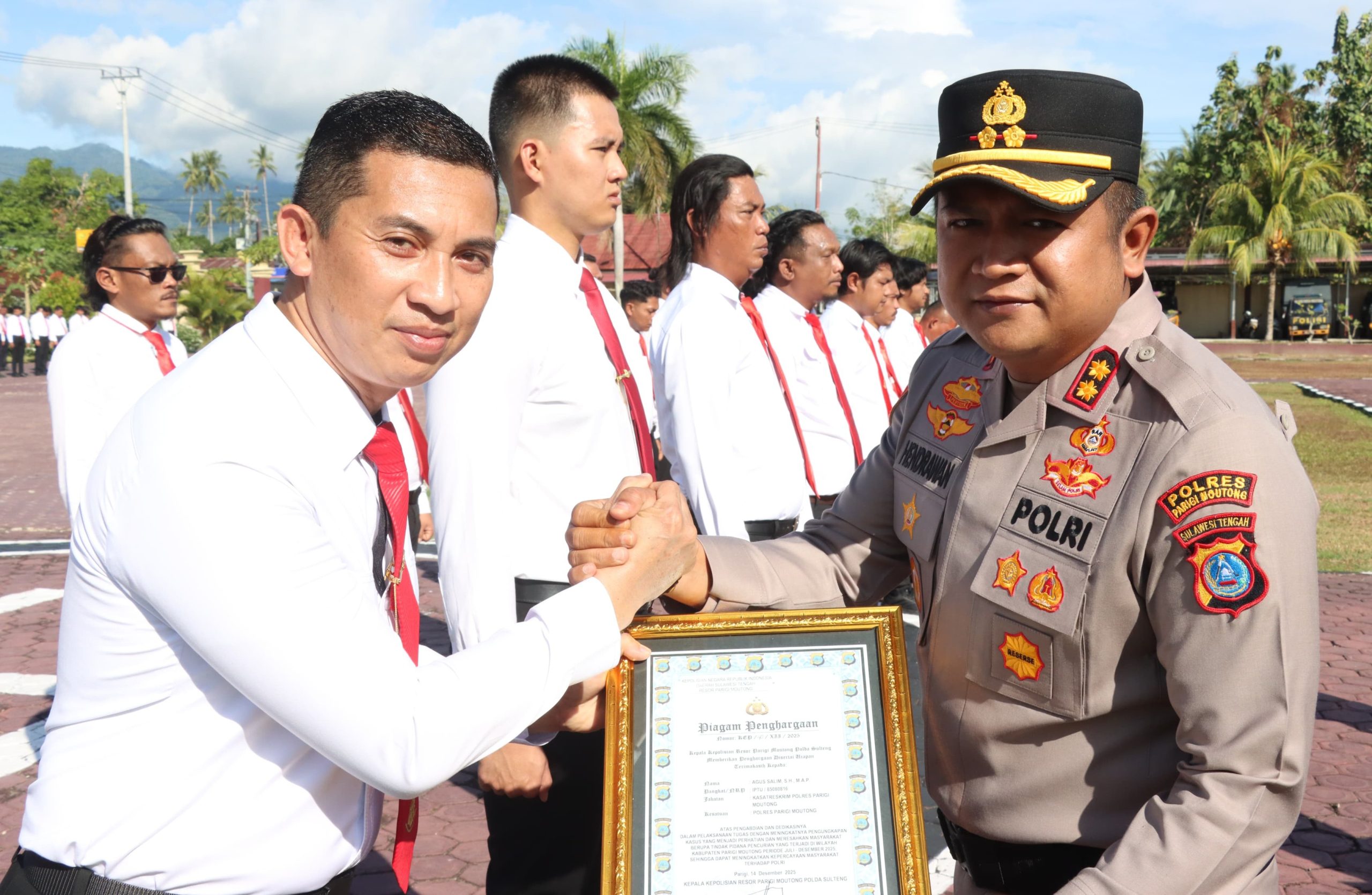 Penyerahan penghargaan tersebut berlangsung pada apel jam pimpinan yang digelar di halaman Markas Komando Polres Parigi Moutong, Senin (15/12/2025) pukul 08.00 Wita. Apel diikuti pejabat utama dan seluruh personel setempat.