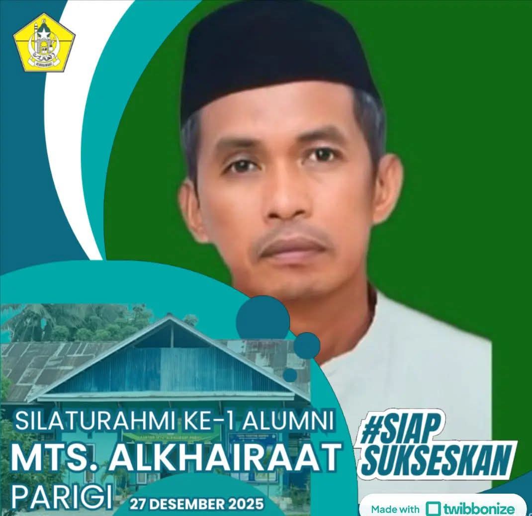 Parigi Moutong, PUSATWARTA.ID — Madrasah Tsanawiyah (MTs) Alkhairaat Parigi, Kabupaten Parigi Moutong, akan menggelar Silaturahmi Alumni ke-1 yang dijadwalkan berlangsung pada Sabtu (27/12/2025).