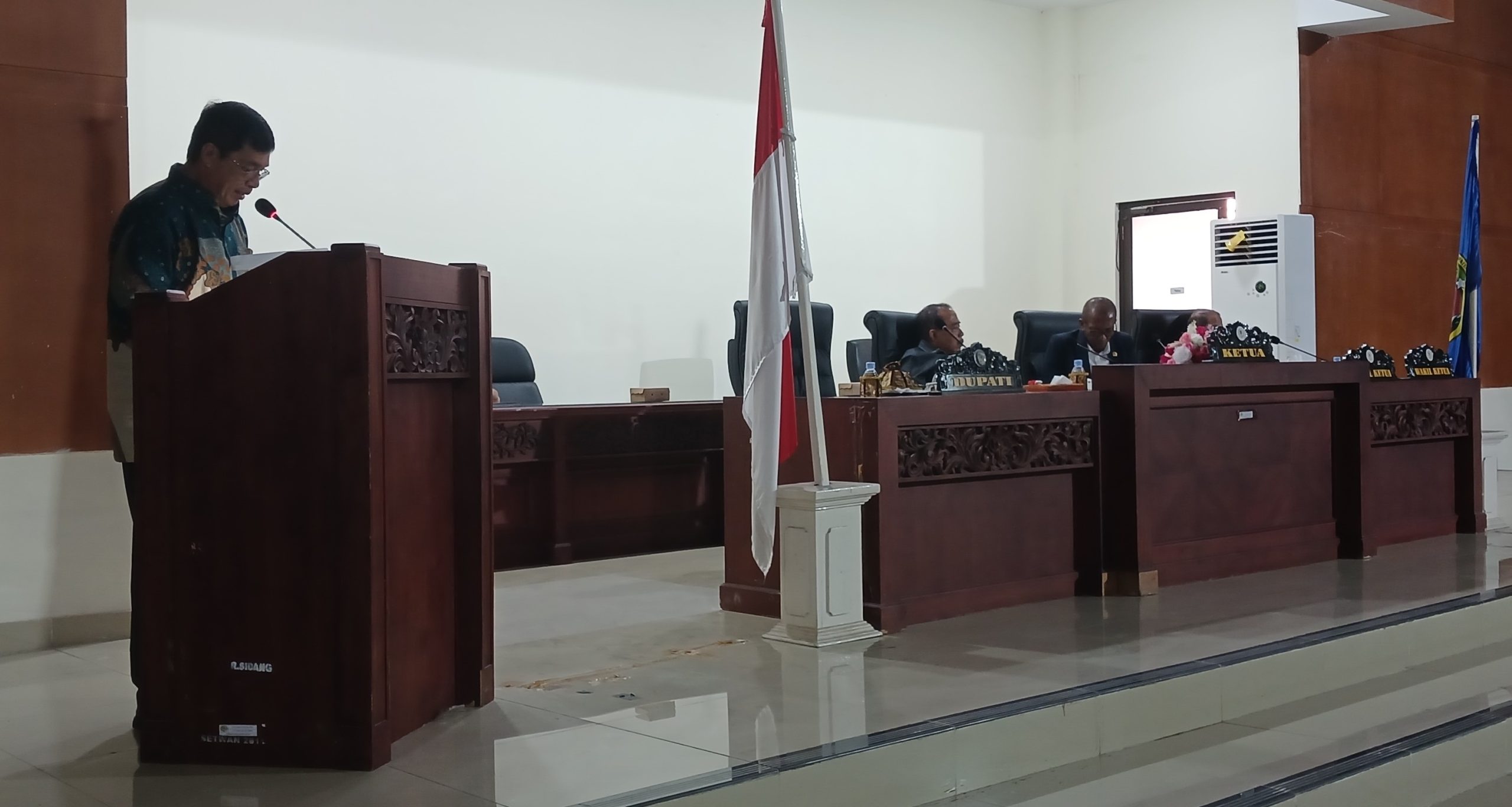 Asisten I Bidang Pemerintahan dan Kesra Setda Parigi Moutong, Abd. Azis Tombolotutu saat menghadiri rapat paripurna DPRD, Senin (19/1/2026).