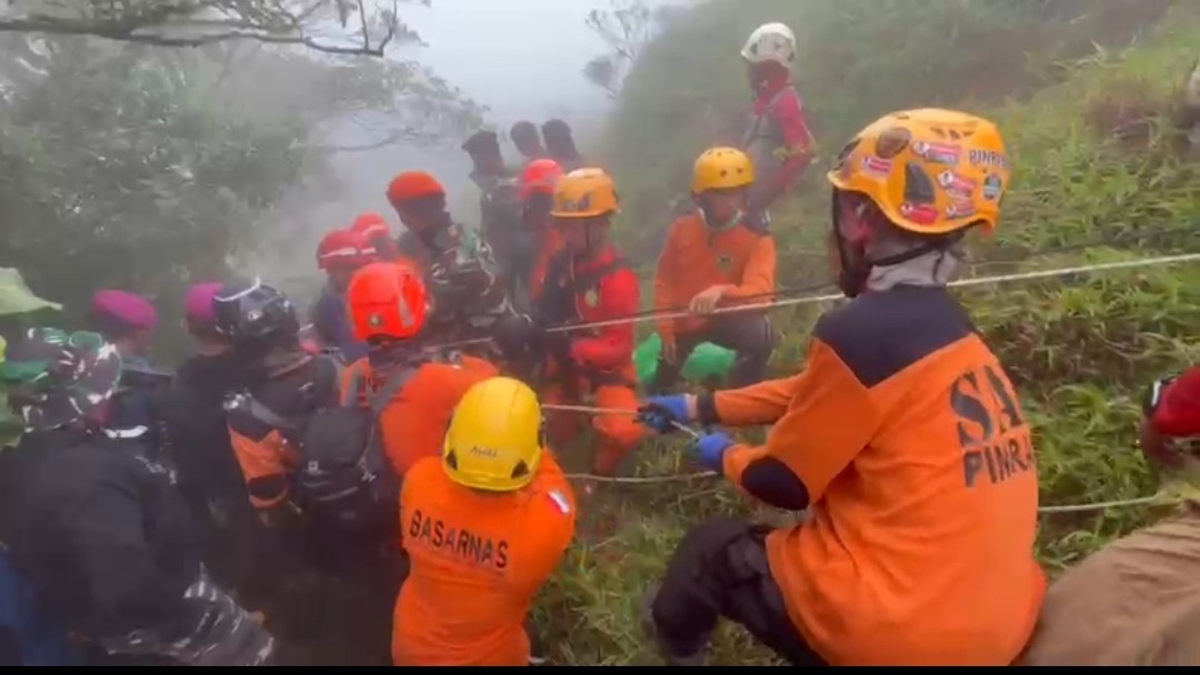 Satu korban berhasil dievakuasi dari jurang sedalam sekitar 350 meter ke atas puncak pegunungan.
