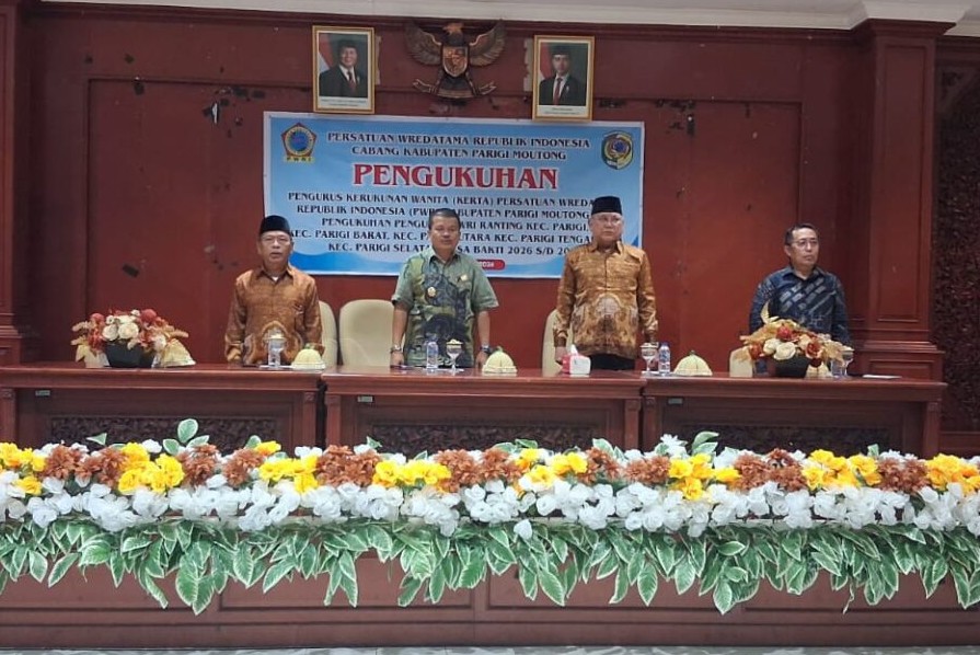 Parigi Moutong, PUSATWARTA.ID – Wakil Bupati Parigi Moutong, Abdul Sahid menghadiri pengukuhan pengurus Kerukunan Wanita (Kerta) Persatuan Wredatama Republik Indonesia (PWRI) Kabupaten Parigi Moutong serta pengurus ranting lima kecamatan masa bakti 2026–2031, di Aula Lantai II Kantor Bupati, Senin (16/2/2026).
