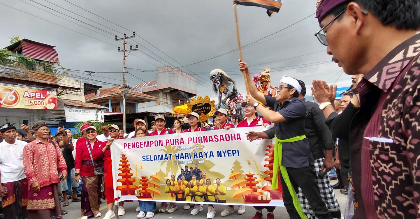 Dalam sambutannya, Bupati menegaskan bahwa perayaan Nyepi tidak hanya menjadi tradisi keagamaan, tetapi juga momentum refleksi diri untuk membangun kehidupan yang lebih harmonis di tengah keberagaman.