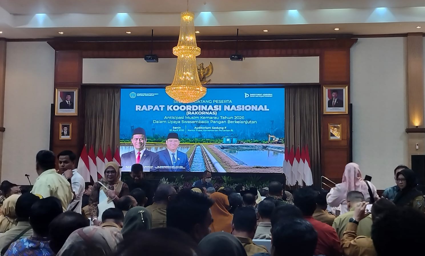 Hal itu ditunjukkan dengan kehadirannya dalam Rapat Koordinasi Nasional (Rakornas) Mitigasi Kekeringan Lahan Pertanian di Kantor Pusat Kementerian Pertanian RI, Jakarta, Senin (20/4/2026).