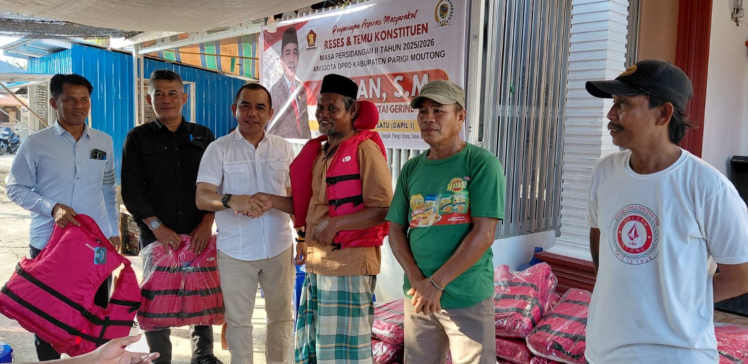Parigi Moutong, PUSATWARTA.ID– Upaya peningkatan keselamatan nelayan menjadi fokus dalam kegiatan reses Ketua Fraksi Partai Gerindra DPRD Kabupaten Parigi Moutong, Faisan Lelo Badja, di Dusun V Perumahan Nelayan, Desa Pelawa Baru, Kecamatan Parigi Tengah, Kamis (23/4/2026).