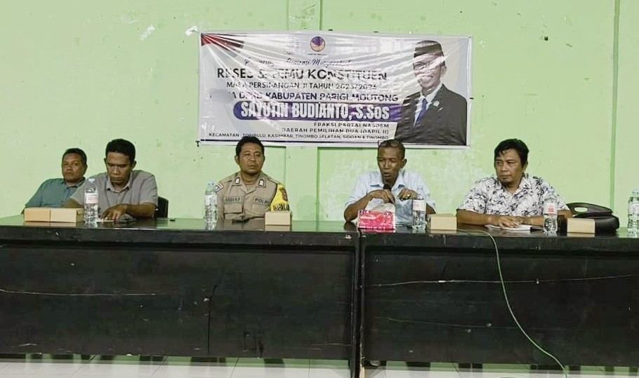 Parigi Moutong, PUSATWARTA.ID – Wakil Ketua I DPRD Kabupaten Parigi Moutong, Sayutin Budianto, melaksanakan agenda reses dan temu konstituen masa persidangan tahun 2026 di Aula Kantor Desa Donggulu, Kecamatan Kasimbar, Jumat malam (24/04/2026).